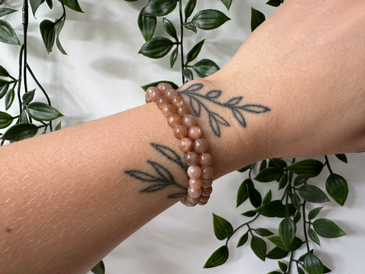 Maansteen perzik kogelarmband 6mm