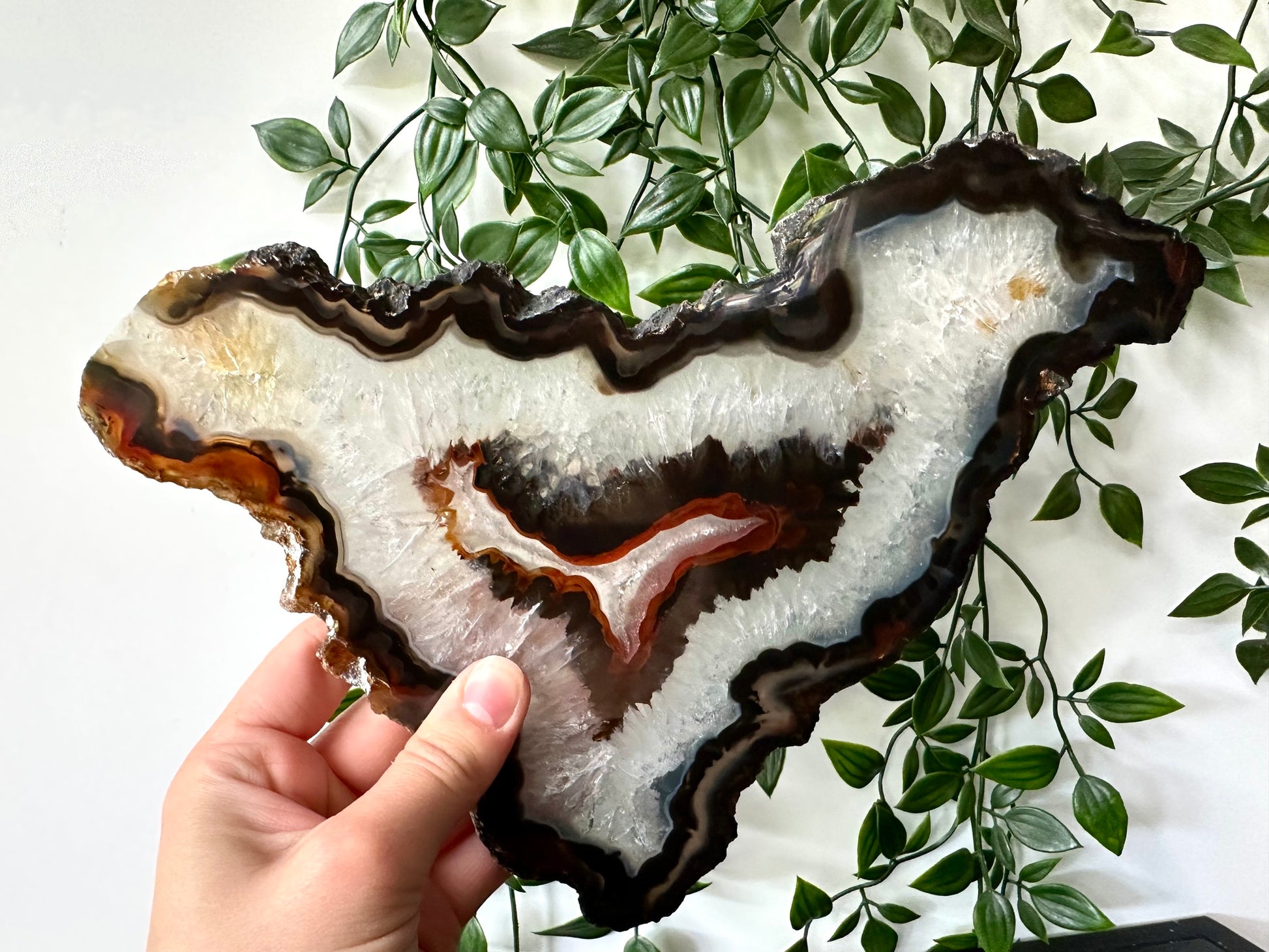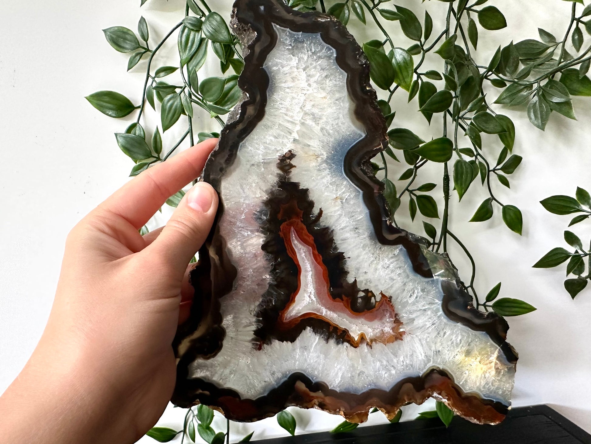 De agaat weegt 476 gram en heeft een lengte van 27cm.