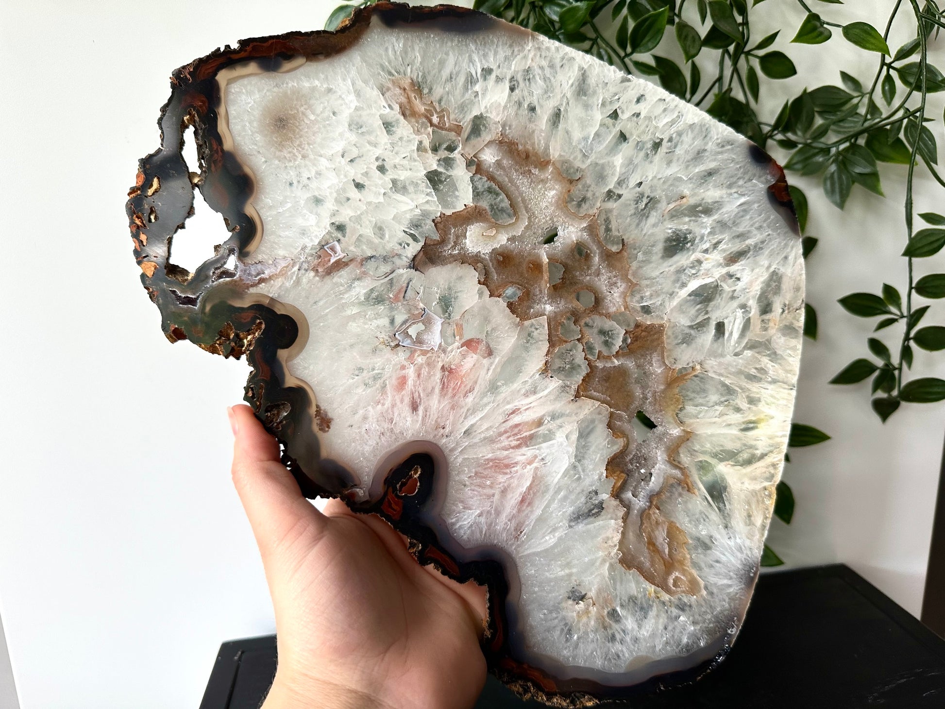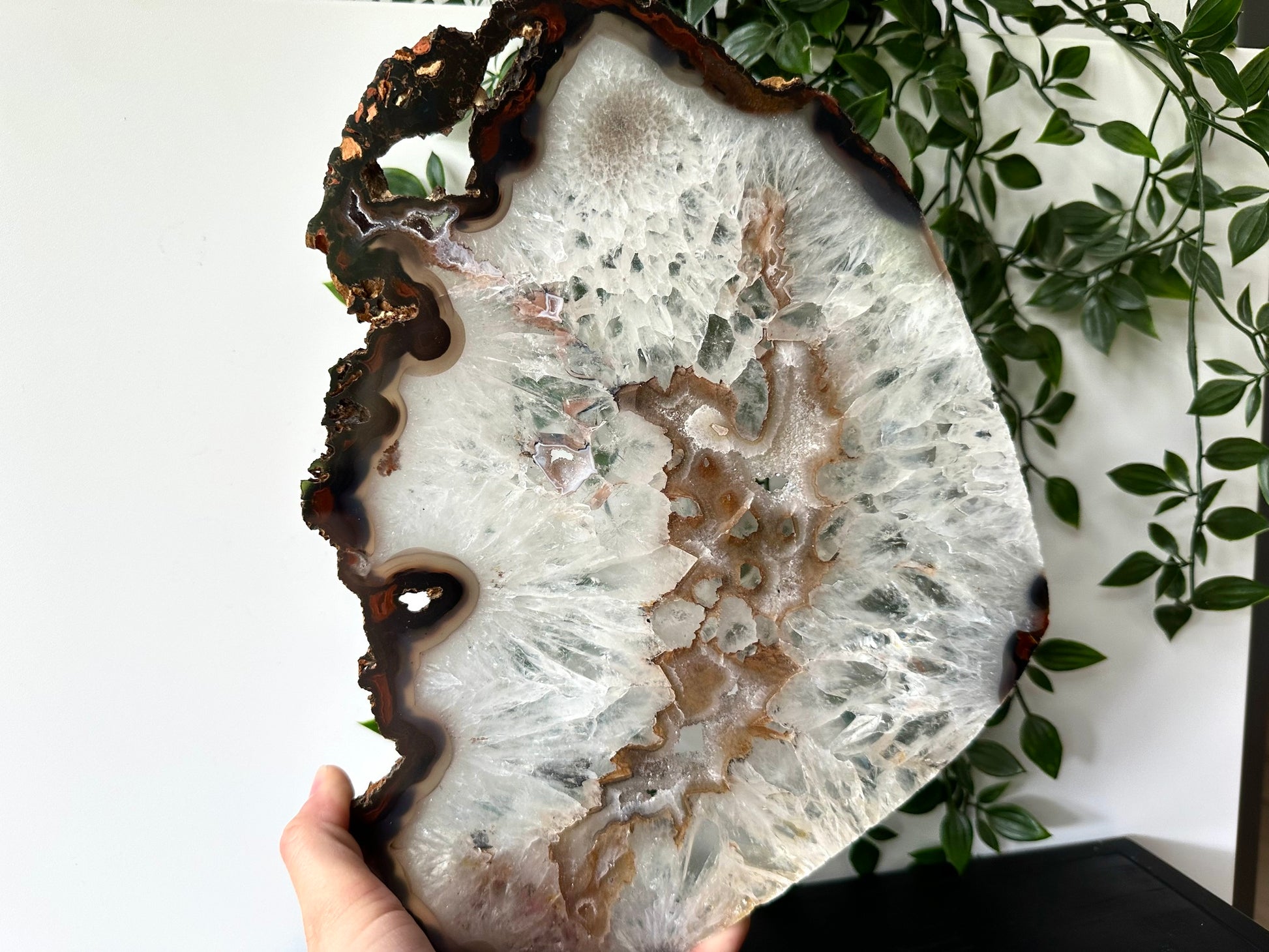 De agaat weegt 1008 gram en heeft een lengte van 32cm.