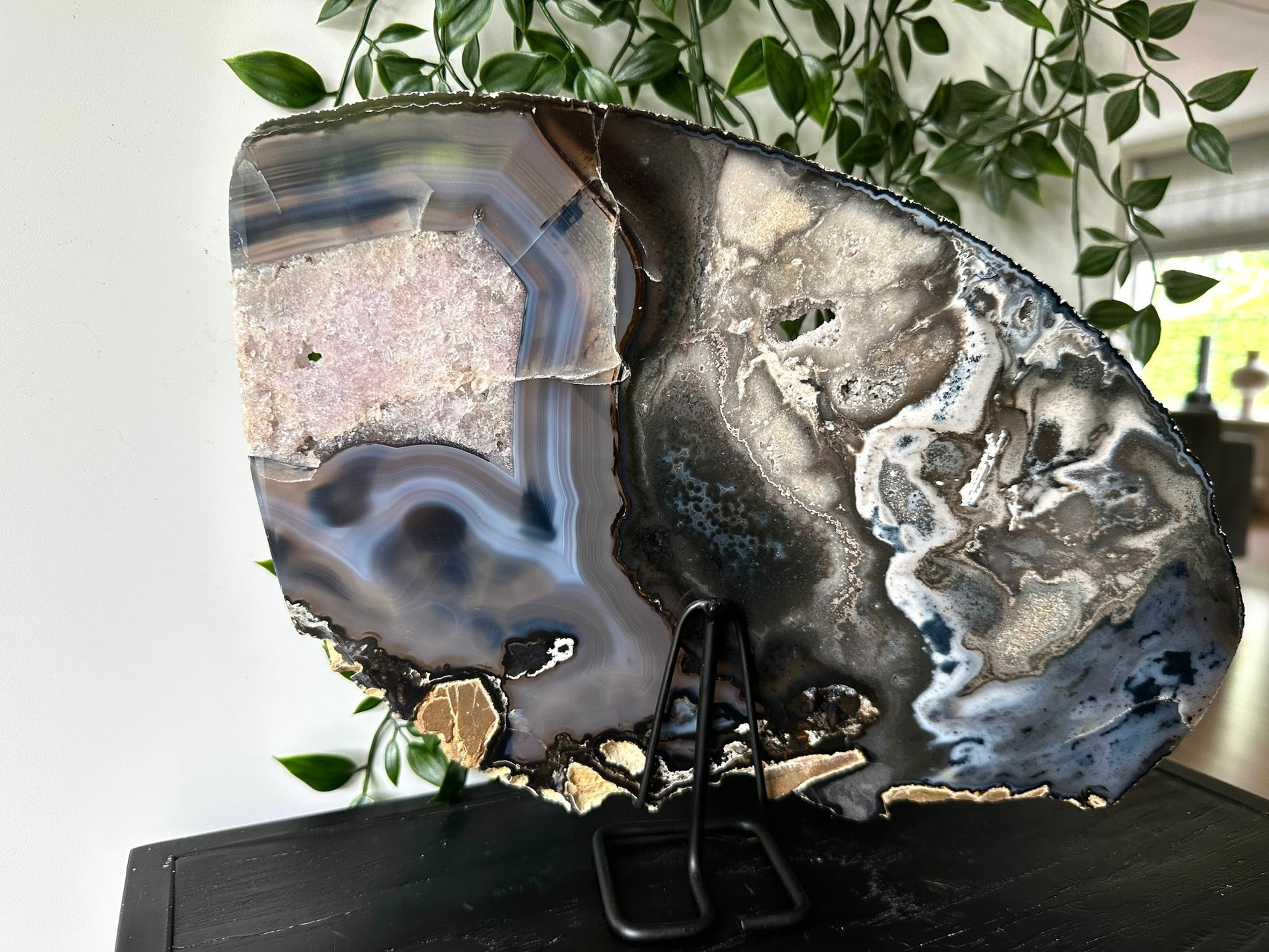 De agaat weegt 1012 gram en heeft een lengte van 34cm.