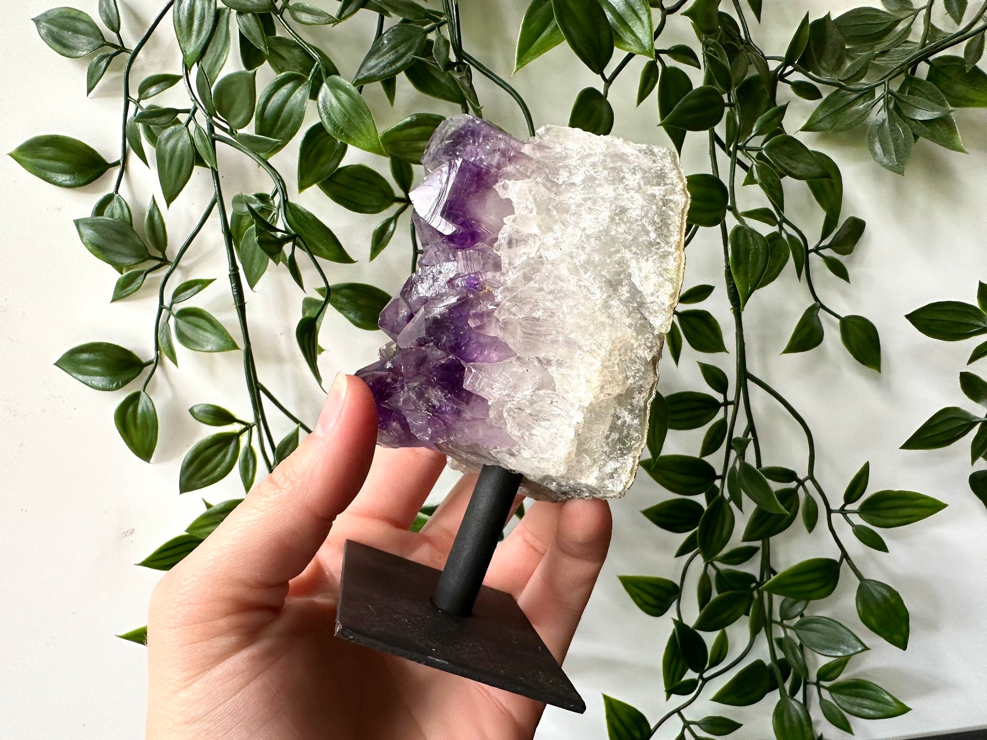 Amethist cluster op standaard